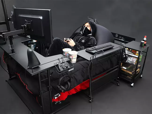 Made by gaming furniture producer Bauhütte, the bed has every single gadget you’ll need for gaming, napping and snacking. It is a real experience in itself.