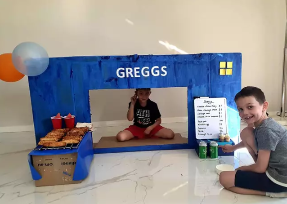 Michelle said that food is the biggest struggle for them in Australia, and nothing is the same here as in their country. And, with sets of cardboard and some elbow grease, this family of four made their own version of Greggs.