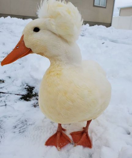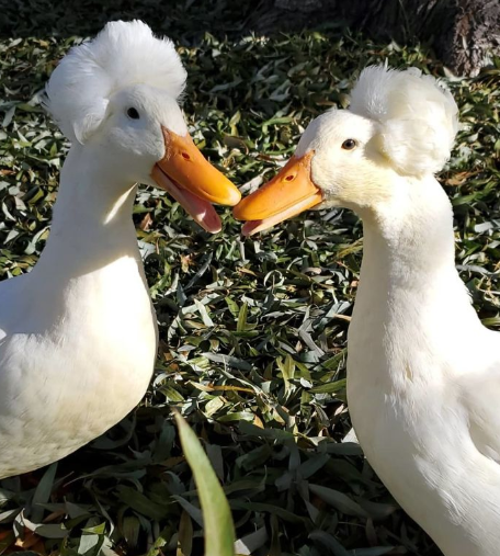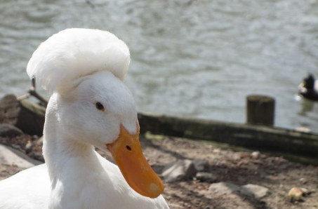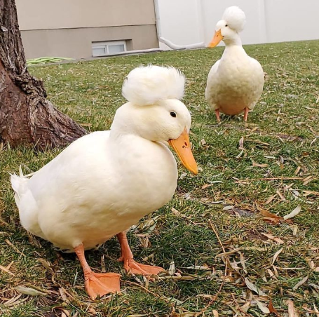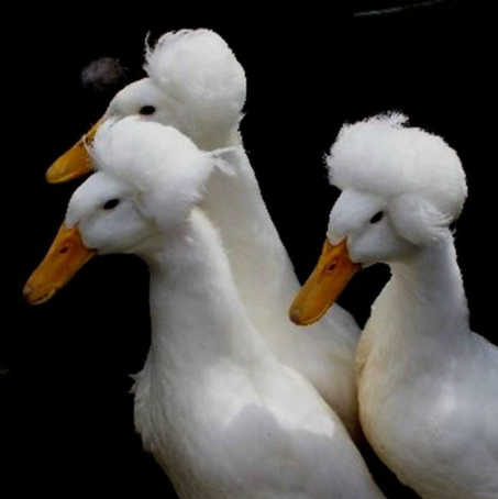 The ducks have finally made it to social media and they are asking us to look at them for their unique features. These ducks have a bundle of feathers on their head that makes them look like they have stepped out from a court back in the 80’s.