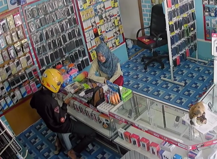 CCTV footage shows the thief entering a cell phone store. The assailant approached the saleswoman and showed her his phone, saying that he wanted to buy a screen protector.