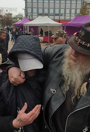 A shameless thief was confronted by a group of angry bikers after they saw him attempting to steal a veteran’s wallet on Remembrance weekend.
