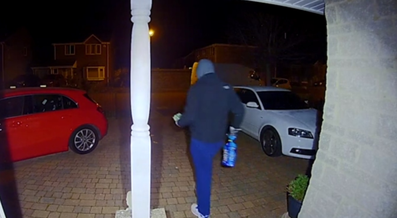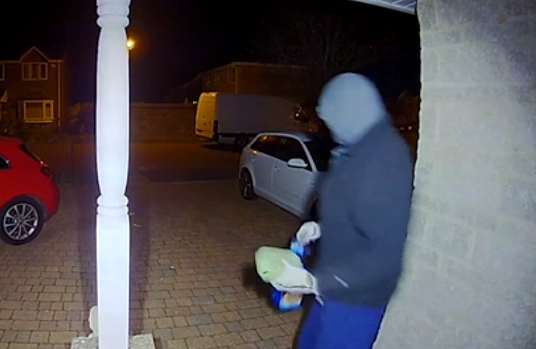 A thief was caught on security camera stealing essentials, including bread and eggs, from the porch of a self-isolating elderly man.