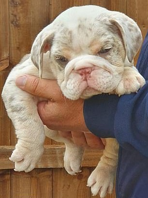 The incident happened in Basildon, England, where hooded burglars raided a family home and sprayed the owners with an ammonia mixture before stealing their bulldog puppies.