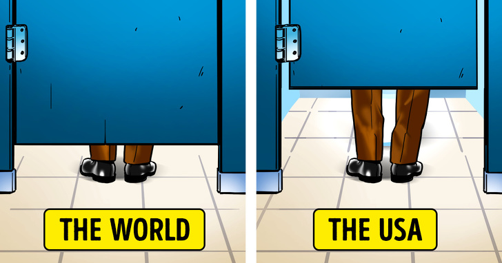 People get surprised when they see a public toilet in the US, they provide less privacy in comparison to restrooms in other countries.
