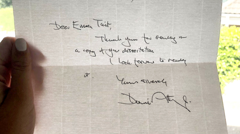 But this young did have a surprise as she received a handwritten letter from her beloved celebrity after she sent him a copy of her dissertation.