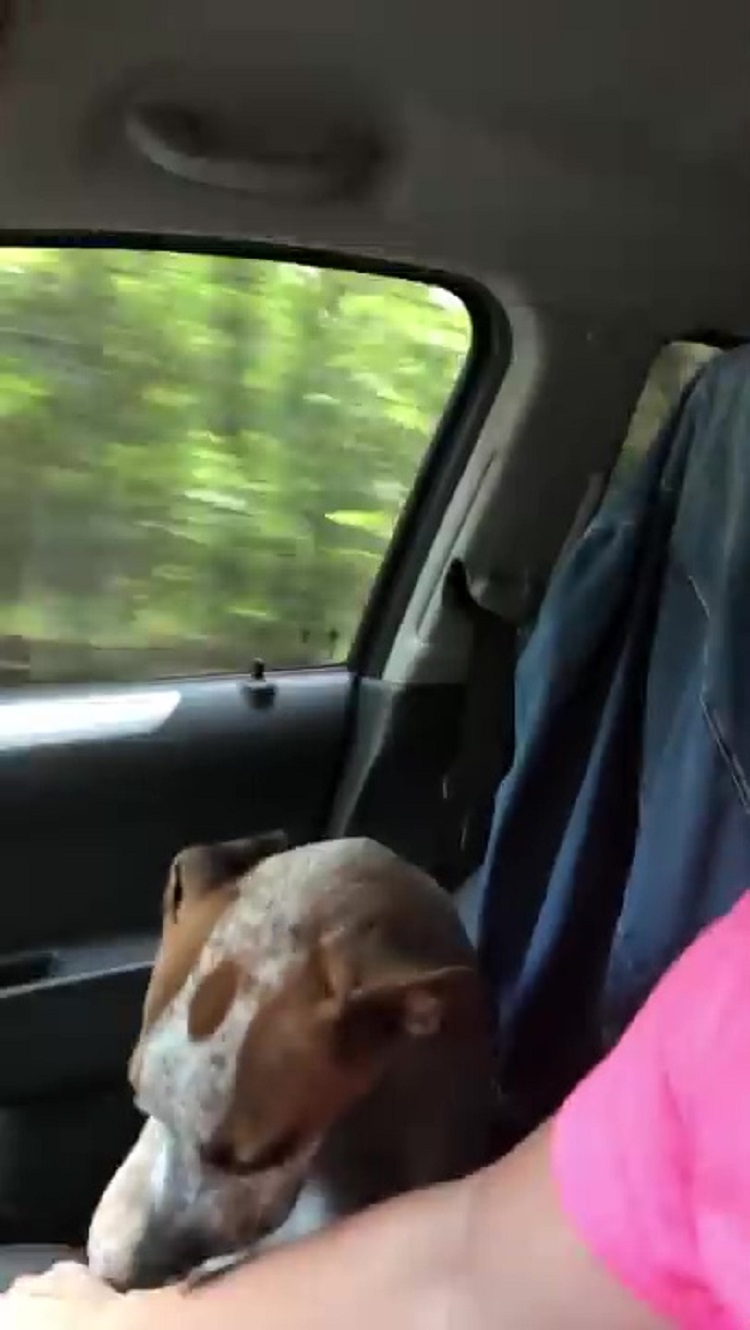 She managed to capture the moment on video and it shows her with an arm draped across the dog seated on the passenger’s seat. Whenever she tried to move her hand away, the dog curled his paw around her arm to bring it back and at one time even snuggled his head against her arm.