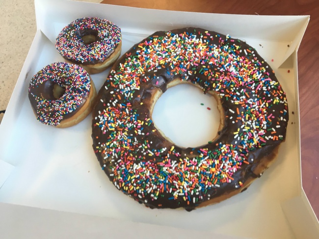 6 “I was blessed today with a giant donut that was made with leftover dough from my local donut shop.”
