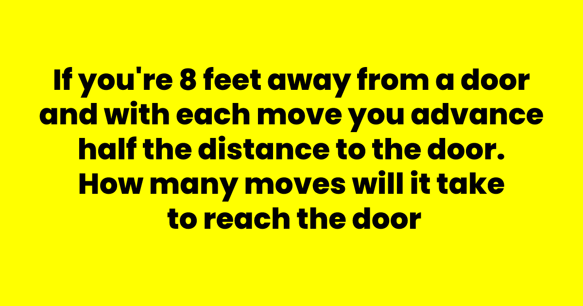 If you are eight feet away from a door, and with every one of your moves, you advance almost half the distance to the door. How many moves will you require to reach the door?