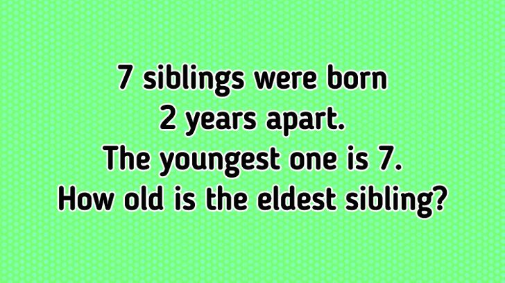 “7 siblings were born 2 years apart. The youngest one is 7. How old is the eldest sibling?”
