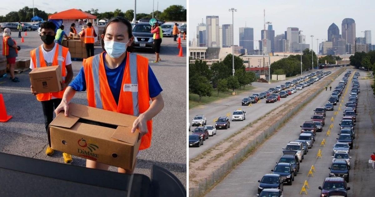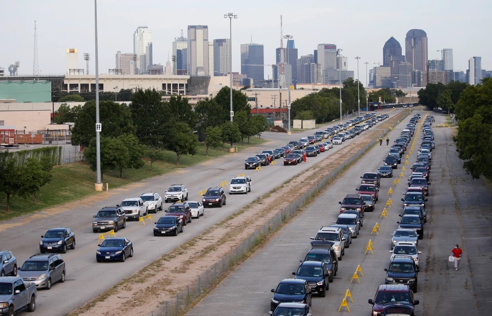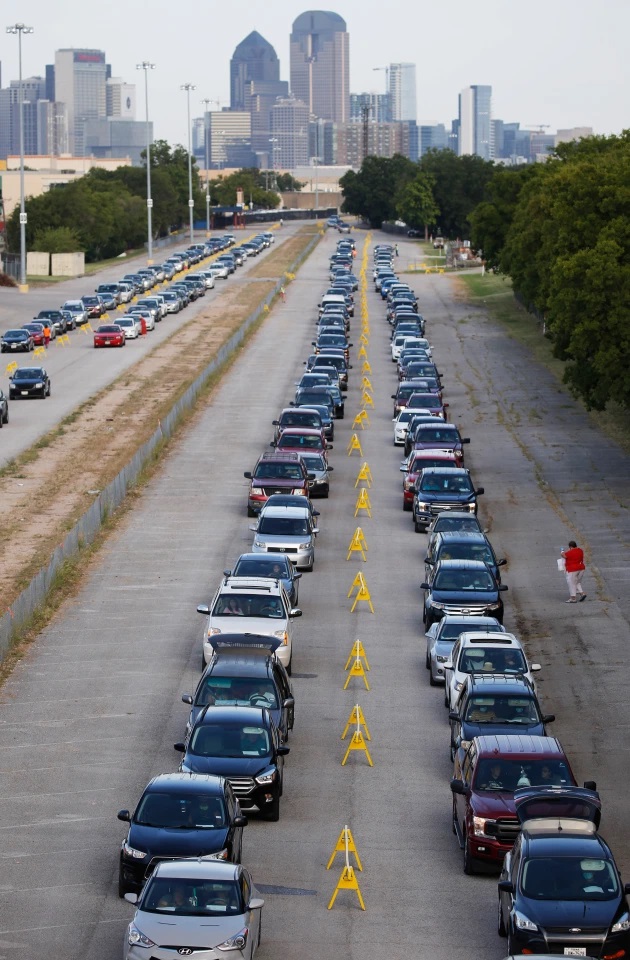 The desperate long line of cars took place at Fair Park in Dallas as the North Texas Food Bank organized free food distribution for the fourth time since the start of the pandemic that cost millions of people their jobs.