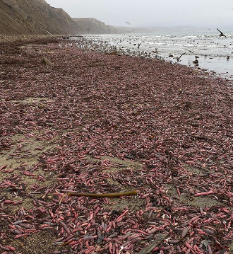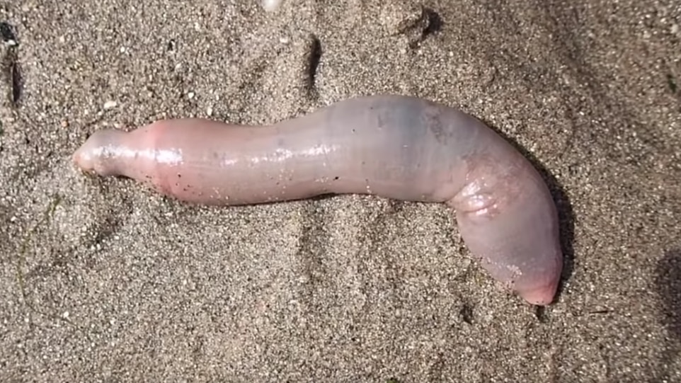 Following a winter storm, thousands and thousands of penis fish washed off at the beach in California leaving people in deep shock. The creatures we can see here live deep underwater.