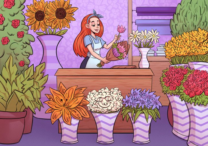 The brainteaser features a woman in a flower shop, and there are three disguised faces in it! Where are they?