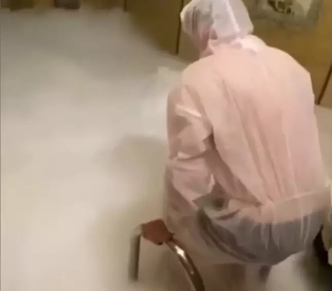 However, reports say that Valentin wanted the dry ice to make an ‘impressive steam show’ as guests jumped into the pool.