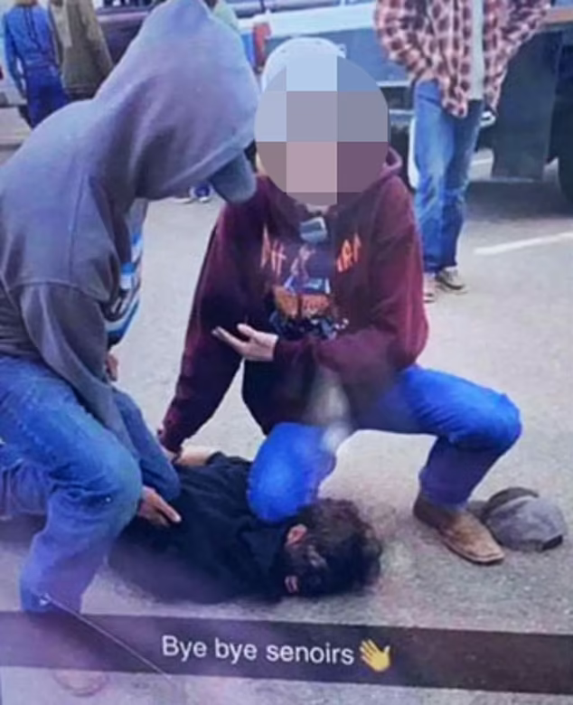The third teenager was in charge of taking the photo, captioning their snap as “bye bye senoirs.” Their image had spread through the use of social media, and was shown on a Change.