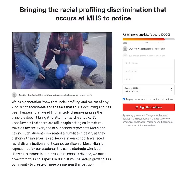 The petition that was posted on Change.org has a biography that states: “It’s unbelievable that there are still people acting so immature towards racism. Everyone in our school represents Mead and having such students re-created a humiliating death, as they dishonor themselves is sad.”