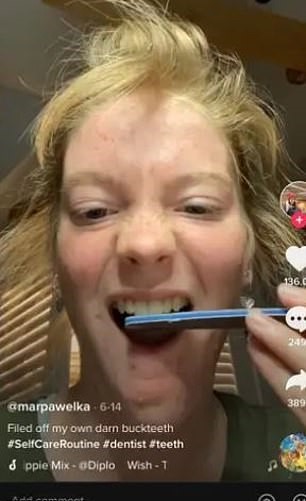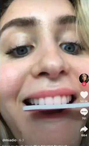 In June, TikTok star Mia Dio shared a video of herself grinding down her teeth with a nail file.