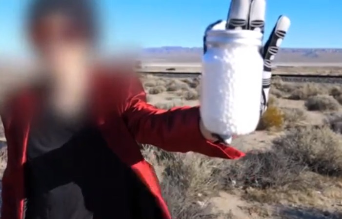 I’m going to show you food, actual food, from the future. Here is actual food from the year 2075,” Kasper said as he showed the camera a jar full of tiny white balls that look exactly like styrofoam balls you can get in any Walmart.
