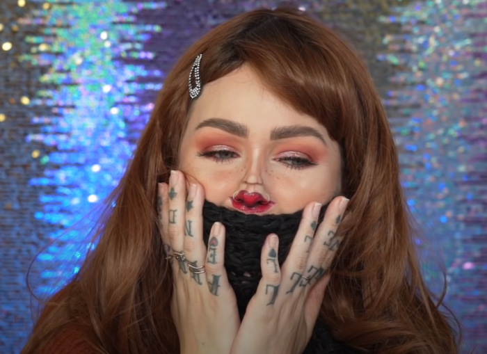 A makeup artist and YouTuber has come up with a new challenge where she paints lips on the nose and covers the mouth with a mask or cloth.