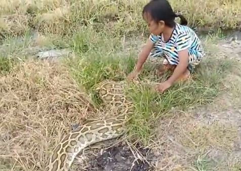 I have never come around a person or a child that fearless to animals like a crocodile or a 5-meter long python that can gulp you down his throat without even making any nice but it seems like Maharani has already become friends with the python the world fears.,