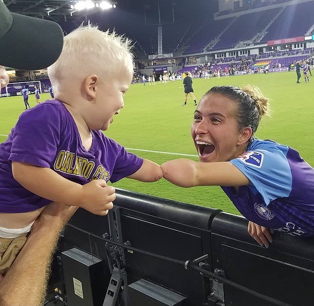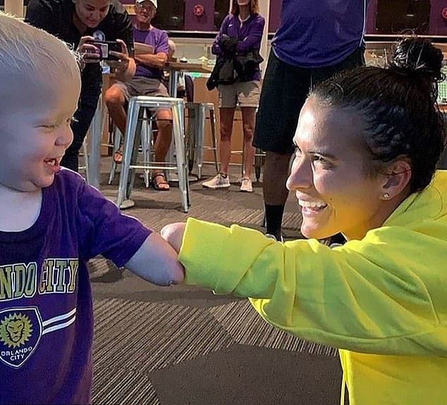 The toddler was born without his left hand but he was all smiles when he met Carson Pickett, who plays for Brisbane Roar.
