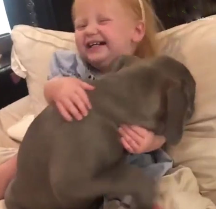 The pup and its little friend are so adorable together and are a treat to watch. The video shows the little girl can’t stop hugging her pup. It shows how much they love each other and their bond is so special.