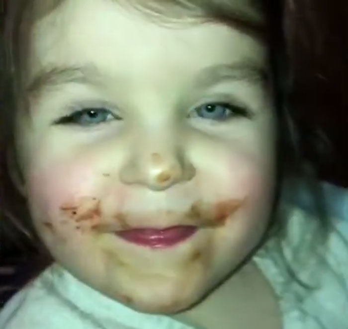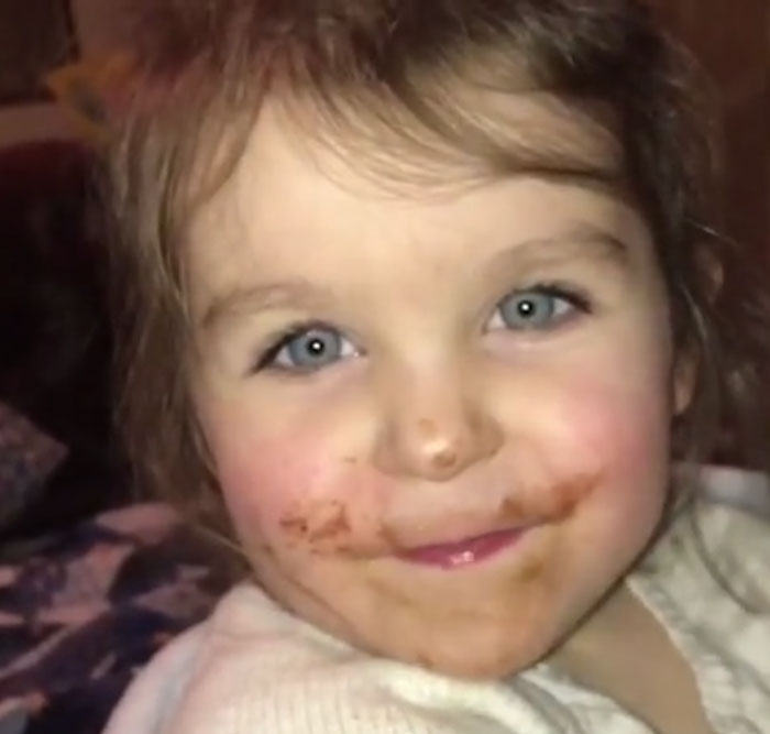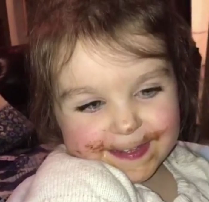 Adorable video footage has emerged that shows a three-year-old girl lying about eating chocolate.