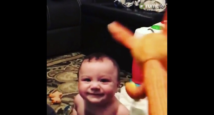 The video shows young Sawyer having a fit of the giggles as his dad brings the stuffed toy close to his face. For some reason, Sawyer finds that very funny and just can’t stop laughing at how close the toy is. And no matter how many times the dad keeps bringing the toy close, Sawyer seems to have an endless supply of laughter to accompany this little bonding moment with his dad.