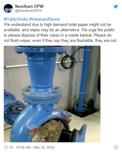 All the agencies around the country have been urging people to stop flushing down wet wipes, especially in the time of chaos.