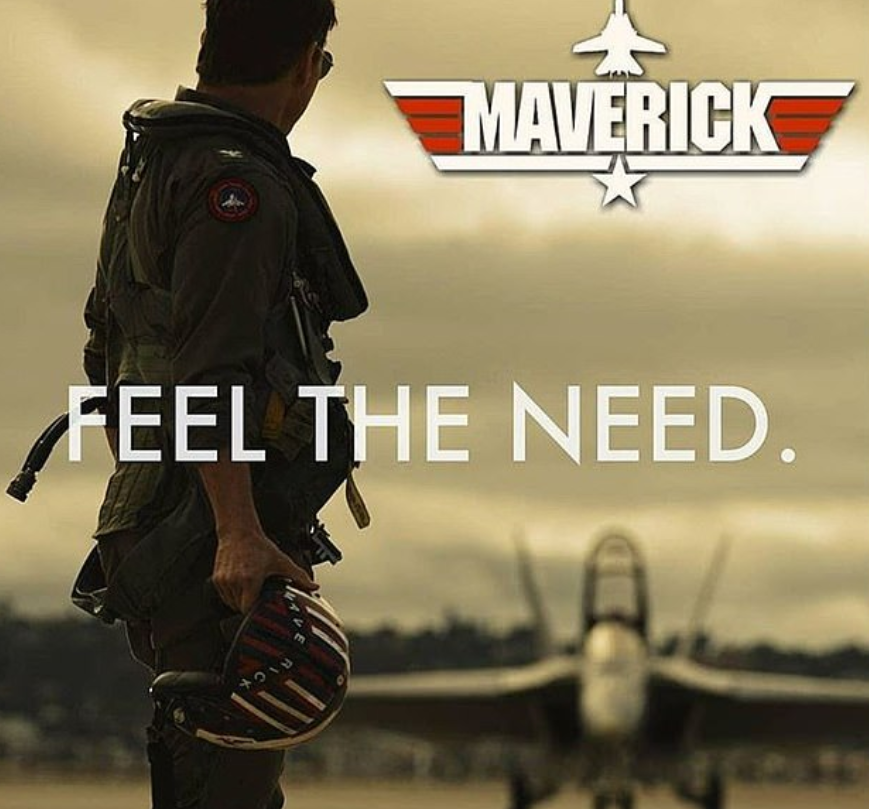 The promotion of the movie was held recently and the character Maverick is posing right next to a classic aircraft looking at the sky where there are fighter jets roaring.