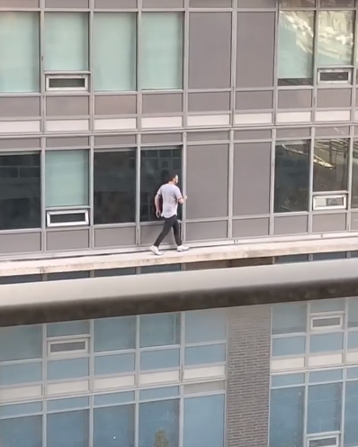 In the video posted on Instagram the man can be seen using a chair to lift himself up and over the balcony rail, he managed to carry the cat all the way along the thin ledge before they reach home.