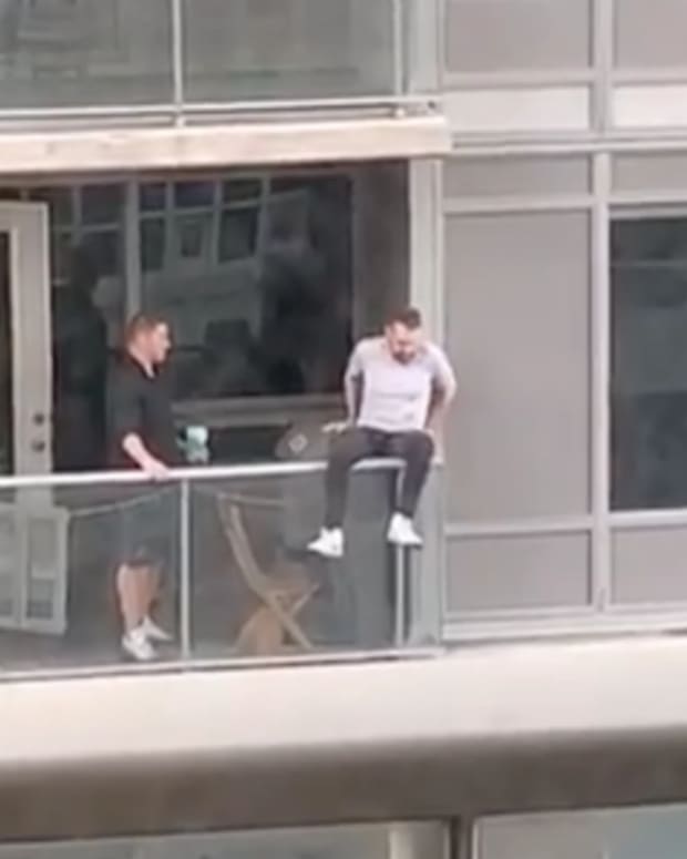 A man from Toronto noticed a cat in danger on a neighbor’s balcony and decided to put his own life at stake to save him.