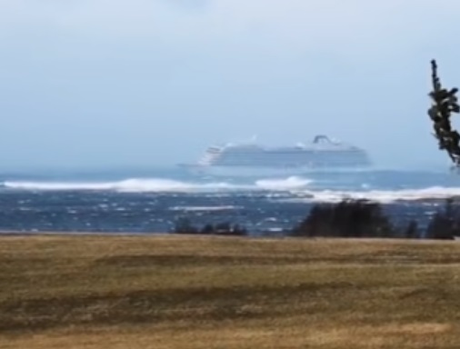 Hundreds of adventurists were left stranded on a large cruise ship after the vessel got stranded just off the coast of Norway amid rough seas.