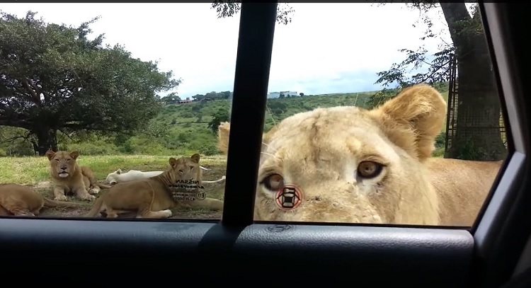 Two sisters named Kaylene and Cindy were with their parents in South Africa and decided to visit a safari. It turns that they weren’t the only ones curious because a lioness who was lounging with her herd nearby suddenly got up and made her way to the car until she reached the door.