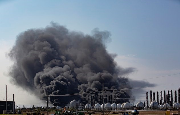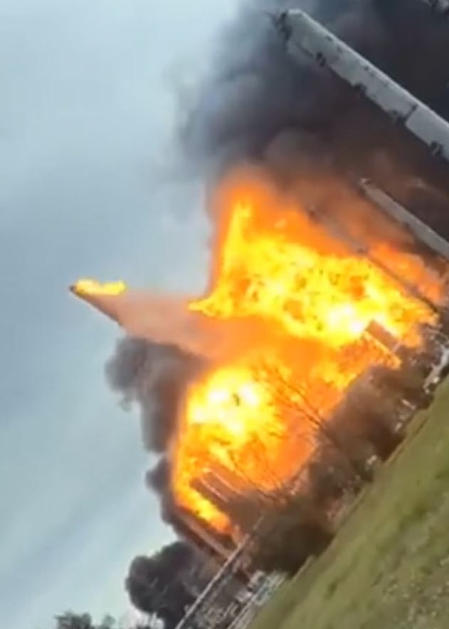 In pictures and videos shared with the media, structural components and clouds of black smoke were seen bursting into the sky.