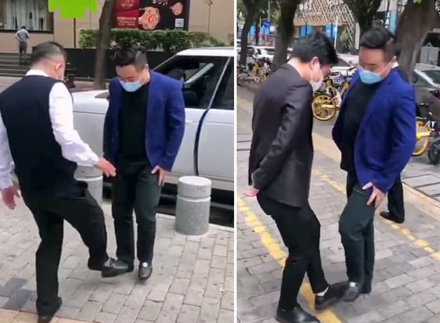 Videos have surfaced showing people from China touching others’ shoes with their shoes when they meet because of the international health crisis that has its roots in China.
