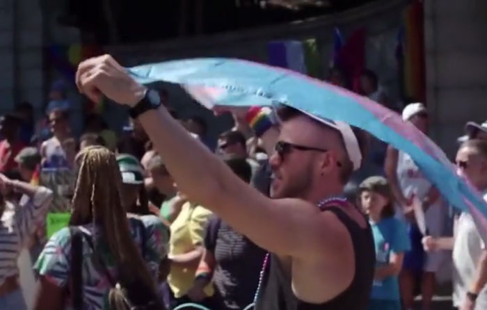 Watch the transgender parents-to-be attending LGBTQ gathering