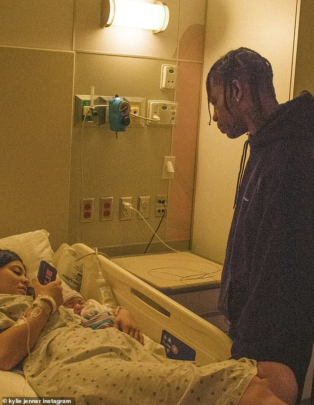 Stormi could be seen in Kylie’s arms in the photo and Travis could be seen standing next to his girlfriend and new-born daughter.