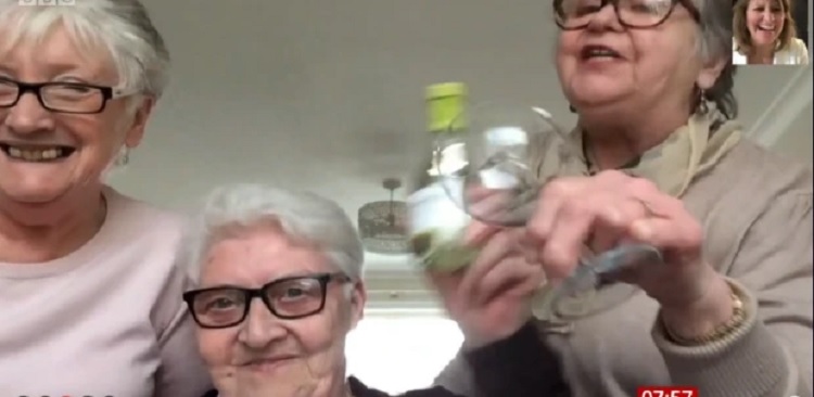 The presenter also joked that instead of grabbing rolls of toilet paper, the friends only bought wine in a panic.