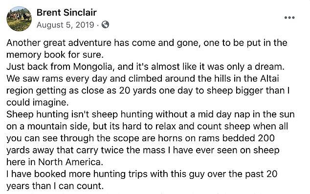 After the 2019 trip, Sinclair wrote on Facebook: “Another great adventure has come and gone, one to be put in the memory book for sure. Just back from Mongolia, and it’s almost like it was only a dream.