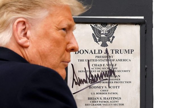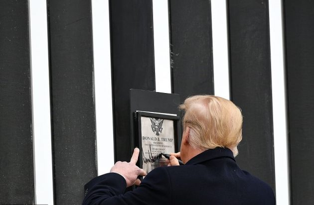 Trump then signed a plaque at the section in Texas in a bid to highlight the legacy of his time in the White House.
