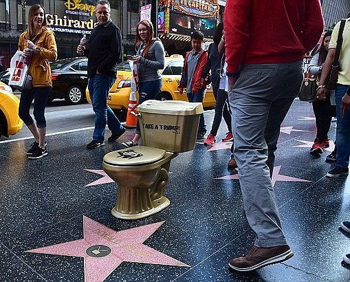 One time, Trump haters even went as far as supplementing the star with a golden toilet that had “Take a Trump!” written on it.