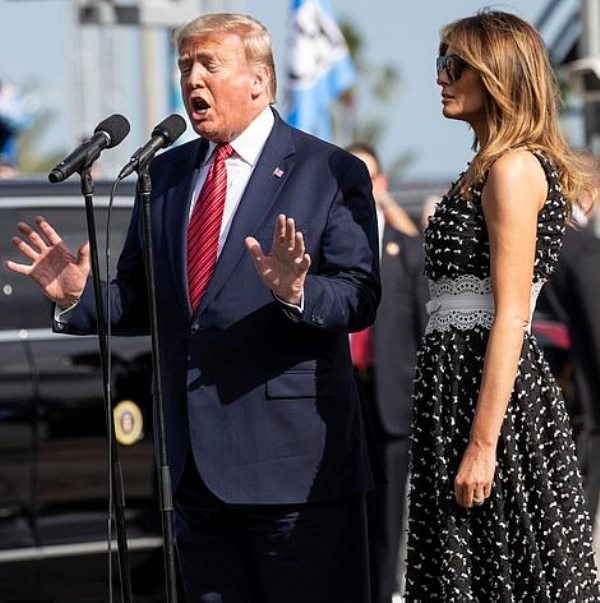 During Trump’s remarks, the first lady smiled and clapped with the fans.