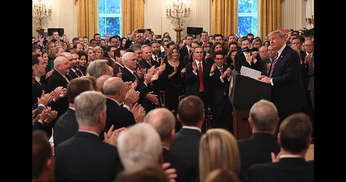 President Donald Trump gathered his political allies at the East Room to celebrate his acquittal over the impeachment charges by the Senate.