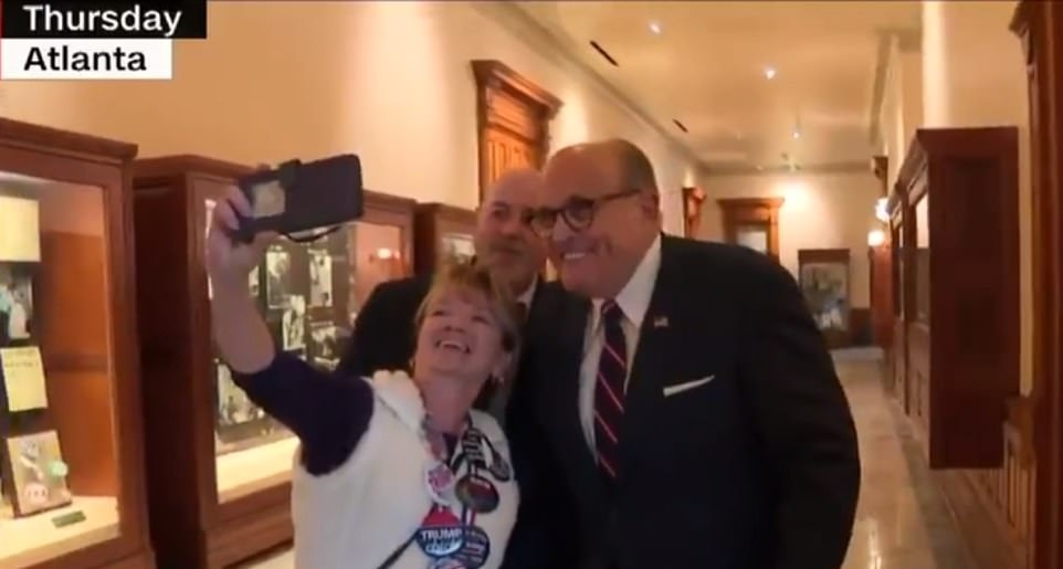 Among other controversial events, Giuliani was seen hugging people and taking photos with strangers – while not wearing a face mask – in Atlanta on Thursday.
