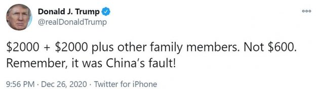 President Trump criticized the $600 stimulus check and demanded $2,000 checks.