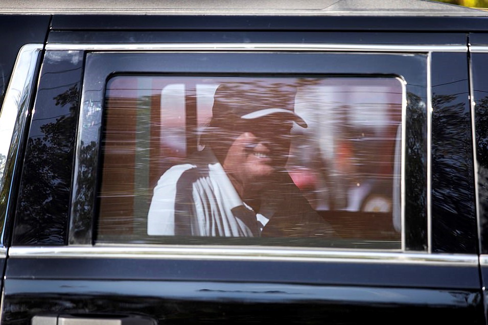 Supporters chanted “USA” and one attendee could be heard yelling: “That’s my president!” as Trump drove by the rally.