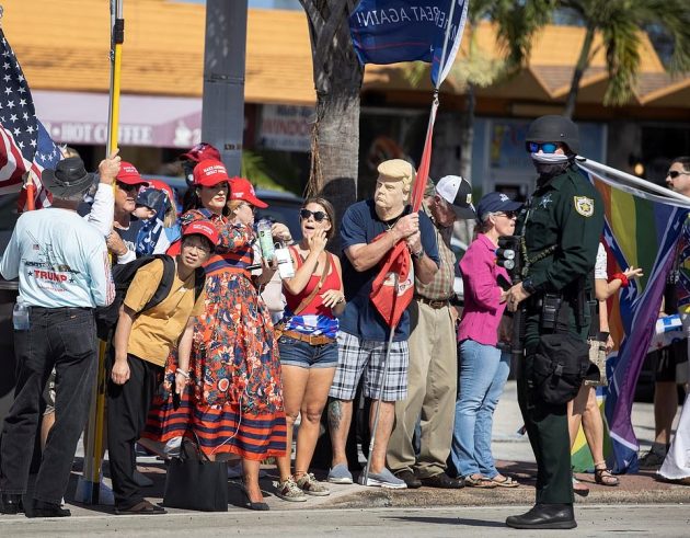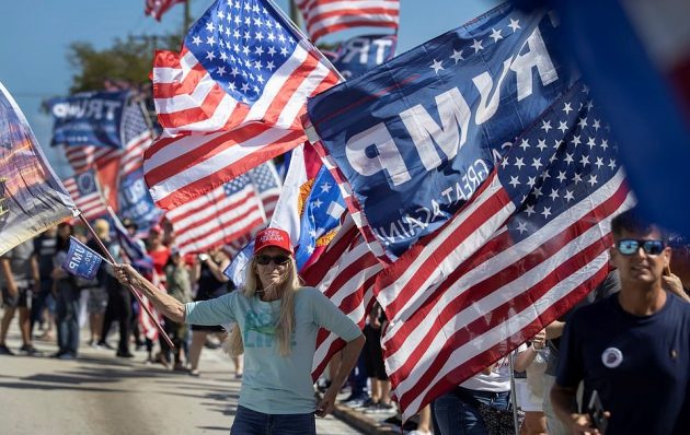 The rally saw around 600 supporters lining the streets outside the Mar-a-Lago club carrying MAGA and American flags while cheering for Trump.