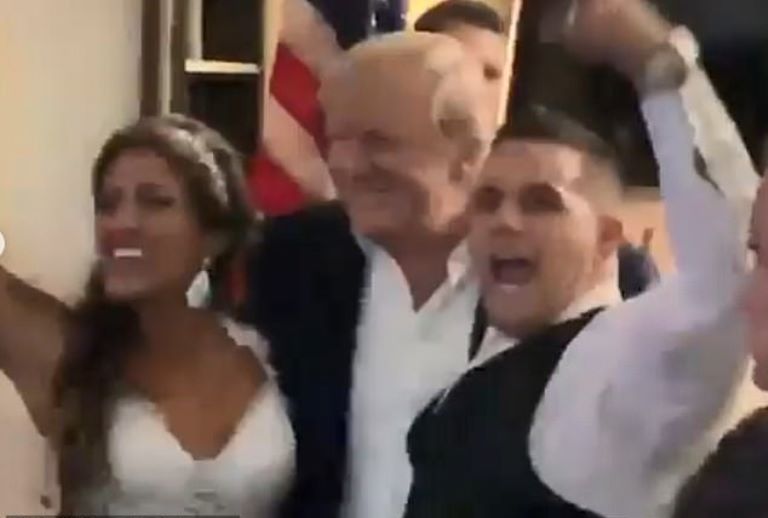 President Trump made a surprise appearance at a wedding of a couple who are his avid supporters.