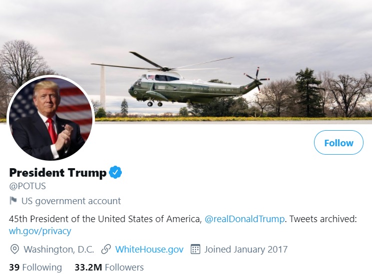 While Trump boasts of over 88 million followers on his private Twitter account, the President also has millions of followers on government-led accounts including @POTUS and @WhiteHouse.