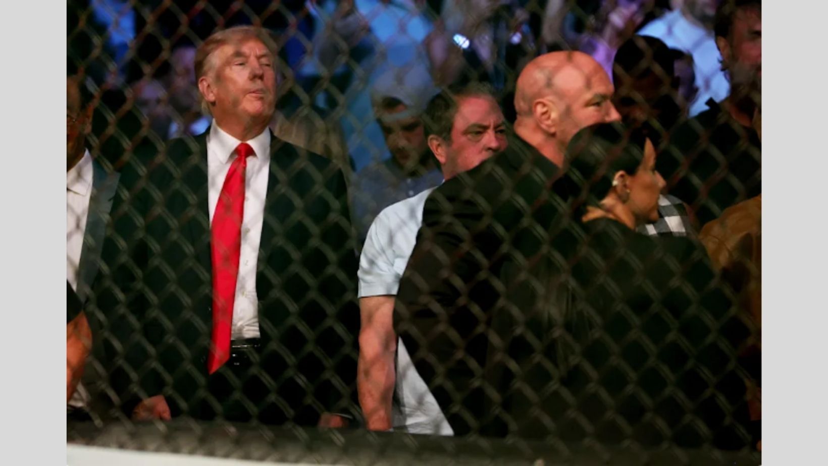 Chants of ‘USA’ were heard as Trump entered and walked toward the cage-side seats next to the Octagon.